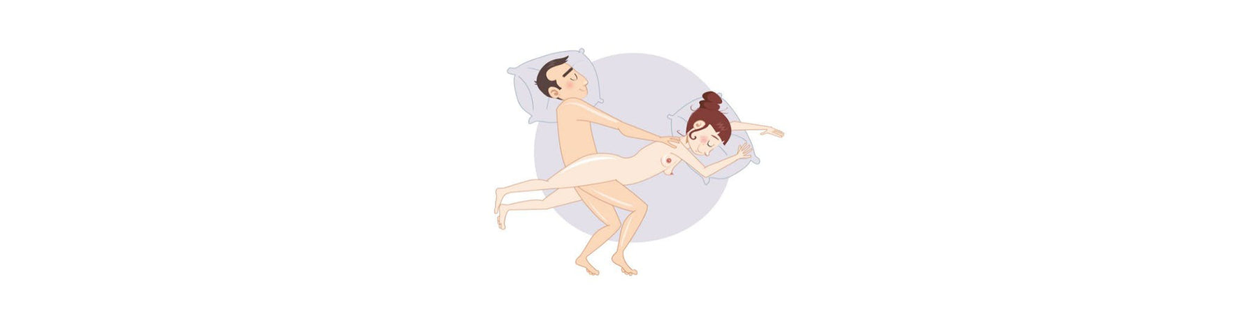La femme est allongée sur le côté, face à l'homme, les jambes légèrement écartées. L'homme s'allonge également sur le côté, mais à angle droit avec la femme, et se glisse entre ses jambes pour la pénétrer.