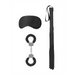 - Contenu : menottes en métal avec fausse fourrure, bandeau en satin, fouet en cuir