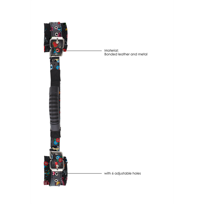 Fabriquées en cuir collé, en acier et en PVC, ces menottes sont robustes et peuvent encaisser des coups. Le motif tatoué ajoute une touche d'originalité à votre équipement BDSM, tandis que le design pratique garantit des nuits excitantes où vous décidez de ce qui se passe.