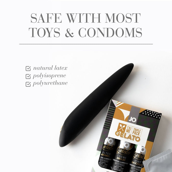 Les packs triples Tri-Me - Gelato comprennent nos lubrifiants à base d'eau aromatisés inspirés des desserts les plus populaires : H2O Gelato - Caramel salé, H2O Gelato - Crème Brûlée et H2O Mint Chocolate.