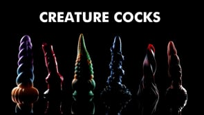 Creature Cock Dildo : Bleu et or, il scintille à la lumière. La spirale torsadée qui monte jusqu'à la pointe de ce dong ajoute des sensations supplémentaires ainsi que de multiples petites ventouses. A la base, de petites vagues viennent éclabousser le bar.